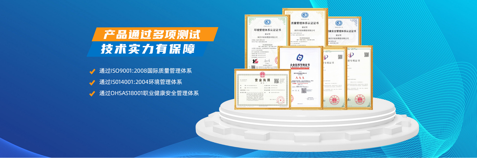 - 焦作市富泉塑胶有限公司,创立于1995年,是一家集研发、设计、生产、销售为一体的大型管材企业。公司位于太极故里、黄河之滨一一河南焦作温县。公司占地128亩,现有职工210余人,其中具有中技术职称的19人。生产、检验设备58台(套),包括PVC实壁管生产线11套、PE实壁管生产线12套、HDPE双壁波纹管生产线6套、PVC双壁波纹管生产线5套,检验设备14台(套)。主要产品有:Φ20mm-630mm、各种压力规格的PVCU、PVC-M、PE给水管材,PVC-U节水灌溉管材,HDPE燃气和矿用管材,DN200-800mm的HDPE、PVC双壁波纹管及各种喷灌、滴灌工程材料。承接大中型市政供排水、饮水安全及节水灌溉等工程。 富泉塑胶公司重视产品的质量、安全、环保和节能,在同行业中率先完成了“新华节水产品认证”,全方面通过ISO9001:2008国际质量管理体系、IS014001:2004环境管理体系和OHSAS18001职业健康安全管理体系的一体化导入,并建立起规范的现代企业管理体系。公司以“质量”为先导,采用质量跟踪、多环节把关的方法,组建具有行业水准的企业技术检测中心,常年委托水利部节水灌溉设备检测中心、河南省产品质量监督检验院对产品跟踪检测,并由中国人民保险公司承保产品质量。公司连续多年被河南省水利厅确定为“安全饮水设备、节水灌溉设备”定点生产企业,并获得“中国名优产品”“质量、服务、信誉AAA企业”“河南省**产品”“河南省水利企业”“河南省守合同、重信用企业”等荣誉称号。 富泉塑胶公司坚持“用户为上”的服务理念,长期以来,全方面关注客户价值,不断提升服务水平。服务队伍常年为客户的产品设计、施工、安装提供合理的方案和全程细致、周到、**、快捷的技术服务。公司自成立以来,一直坚持以人为本的宗旨,塑造企业形象,并致力于新产品的开发,凭借雄厚的技术开发能力,先进的工艺制造流程,严格的质量管理保证体系,优良的售后服务网络,已成为河南省大的饮水、灌溉及排水管材设备制造商。产品畅销全国,而且还以公司雄厚的综合实力在业界中占据着重要的地位。